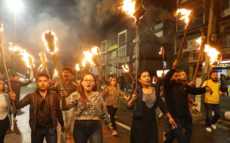 काठमाडौँ – आज पक्राउ परेका एमाले अध्यक्ष केपी शर्मा ओलीको रिहाई माग गर्दै राष्ट्रिय युवा संघले बानेश्वरमा मशाल जुलुस निकाल्दै प्रधानमन्त्री बालेन शाह र गृहमन्त्री सुदन गुरुङ विरुद्ध नाराबाजी गरेका थिए।