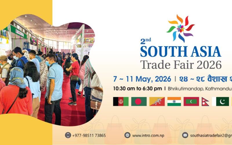 काठमाडौं । दक्षिण एसिया क्षेत्रका उद्योग, व्यापार तथा सेवासम्बन्धी अवसरहरूलाई एकै थलोमा ल्याउने उद्देश्यसहित ”साउथ एसिया ट्रेड फेयर २०२६” आगामी ७ देखि ११ मे २०२६ (वैशाख २४ देखि २८ २०८३) सम्म काठमाडौंमा आयोजना हुने भएको छ । मेला भृकुटीमण्डपस्थित प्रदर्शनी हलमा सञ्चालन हुनेछ ।